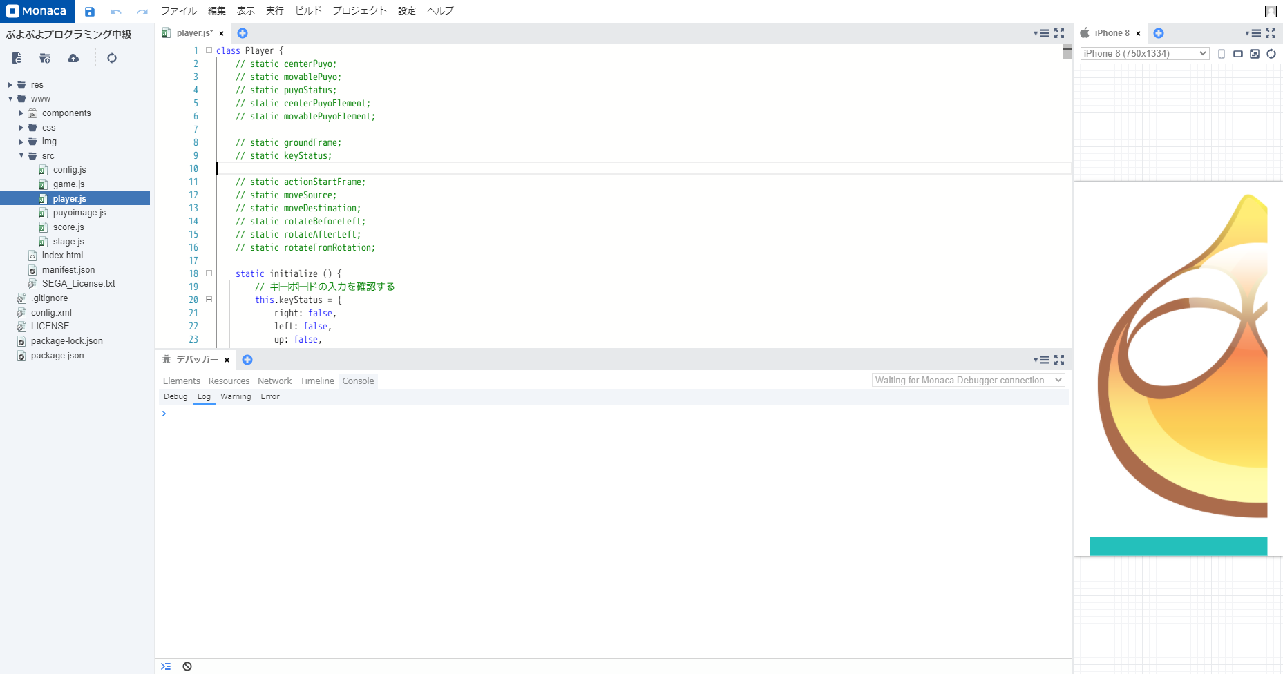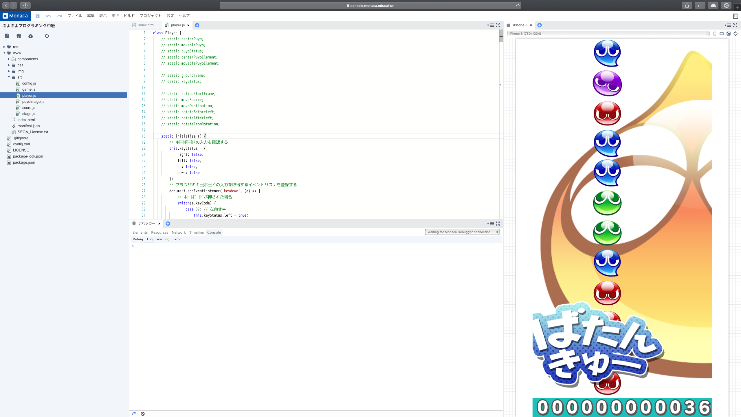 次のステップではぷよを左右に動かせるようにしましょう!と段々とゲームとして出来上がっていき…