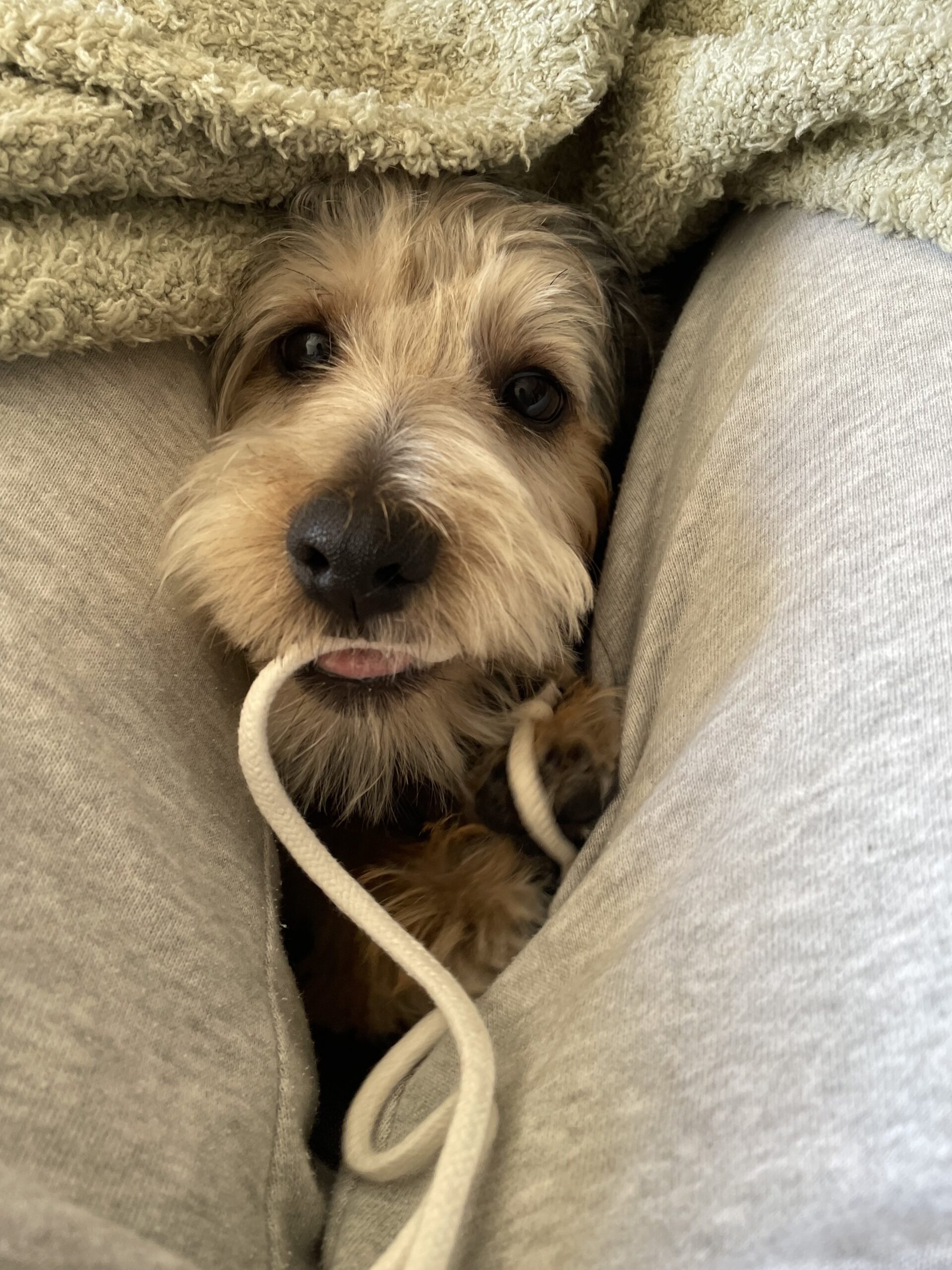 これは私の足の間でスウェットのひもで遊んでいるところです。