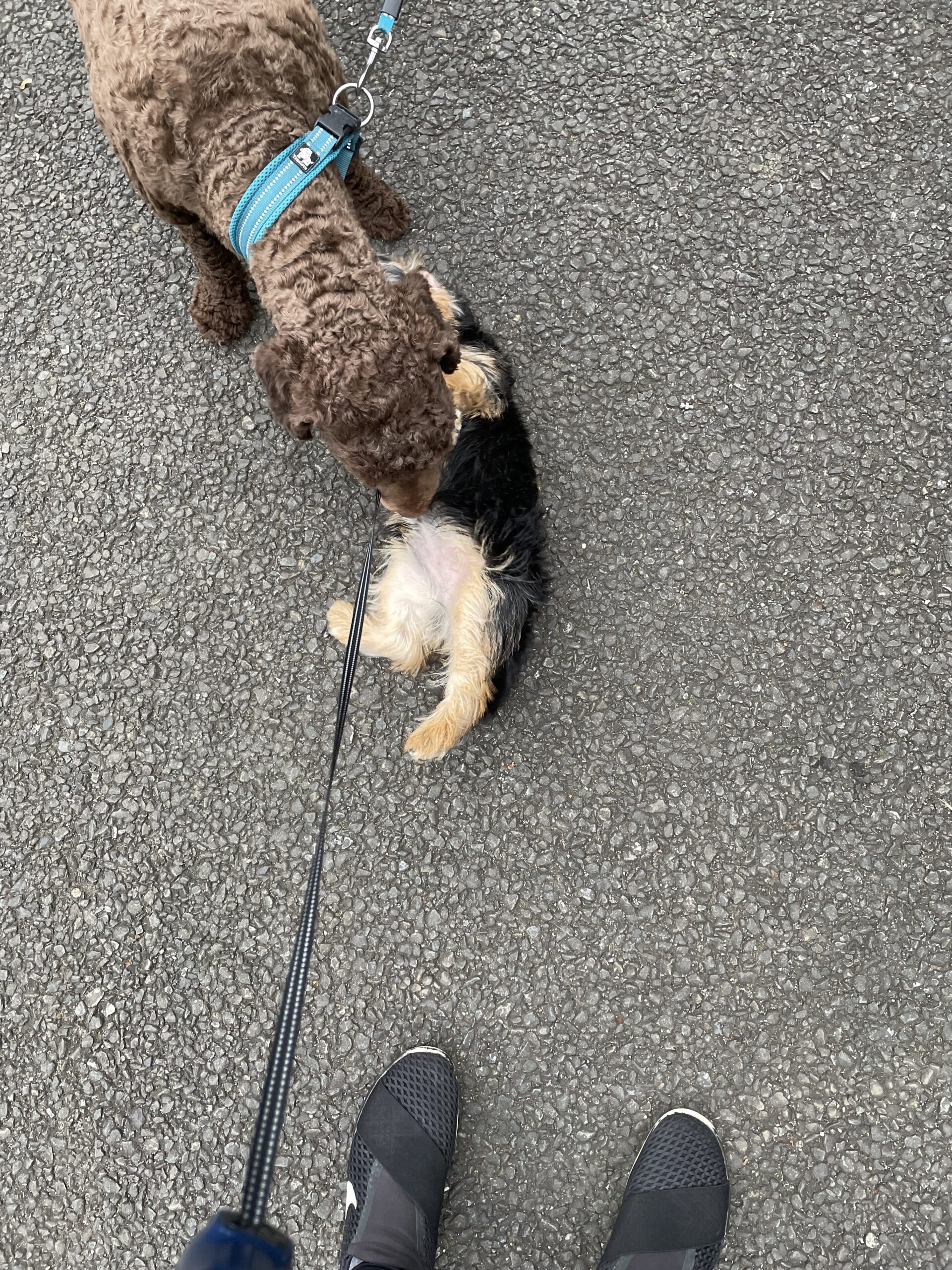 大型犬が大好きですぐに駆け寄っていきますが、いつもおなかを出して動かなくなります。